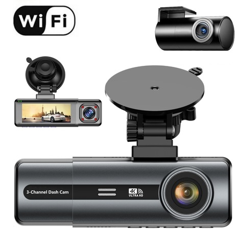 Caja negra para coche, cámaras triples, Monitor de protección de estacionamiento, P 1080, Full Hd, frontal, IR, cámara de marcha atrás interna, grabadora de vídeo, videocámara para salpicadero